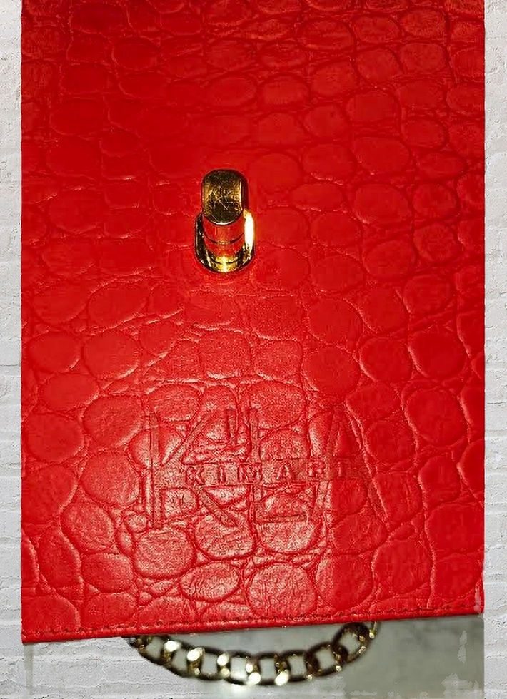 Handmade with embossed leather, the Scarlett Embossed Red Handbag from our Apaki Collection features a distinctive pyramid shape.